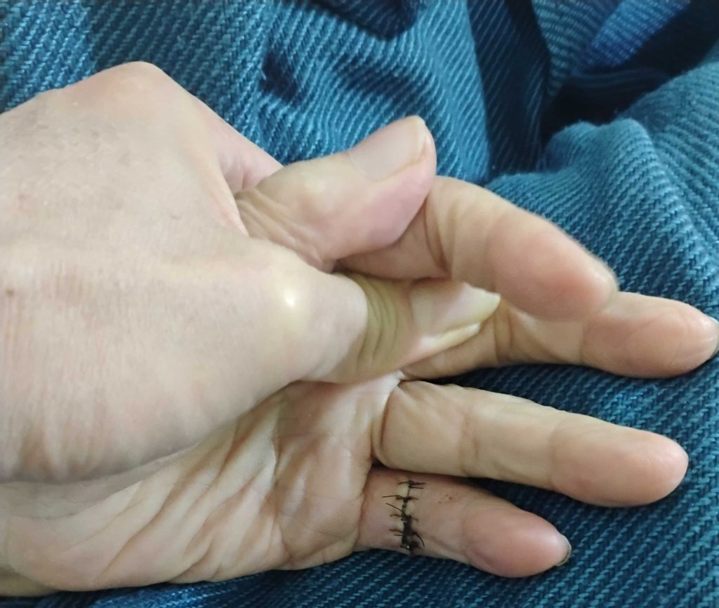 It wasn’t until the 119 emergency services arrived that things changed. Looking at my swollen little finger, they said seriously, “The wound is cleanly cut, suspected to be a knife wound, and there may be a fracture. You must be taken to the emergency room immediately.”