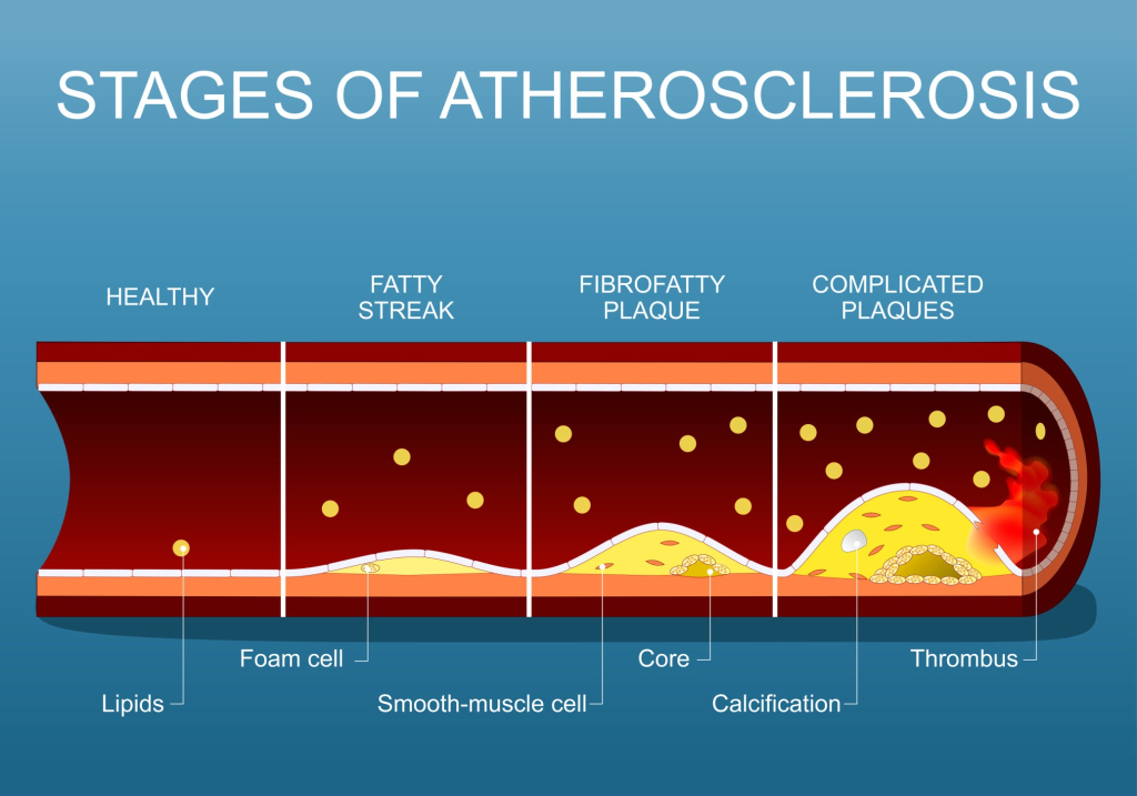 | Middle Stage | Foam Cell Accumulation, Fibrous Cap Formation | May Cause High Blood Pressure |
